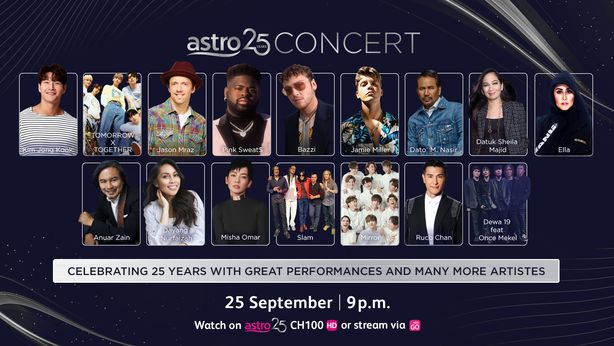 ‘Astro 25 Concert’ akan bersiaran pada hari Sabtu, 25 September, pada jam 9 malam di Astro 25 (Saluran 100) dan boleh juga distrim menerusi Astro GO.
