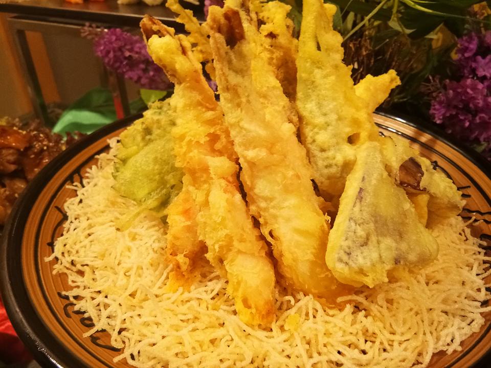 pilihan dari sayur-sayuran mahupun ikan salmon, udang dan sebagainya dimasak menggunakan tepung tempura yang special di buat oleh chef disini