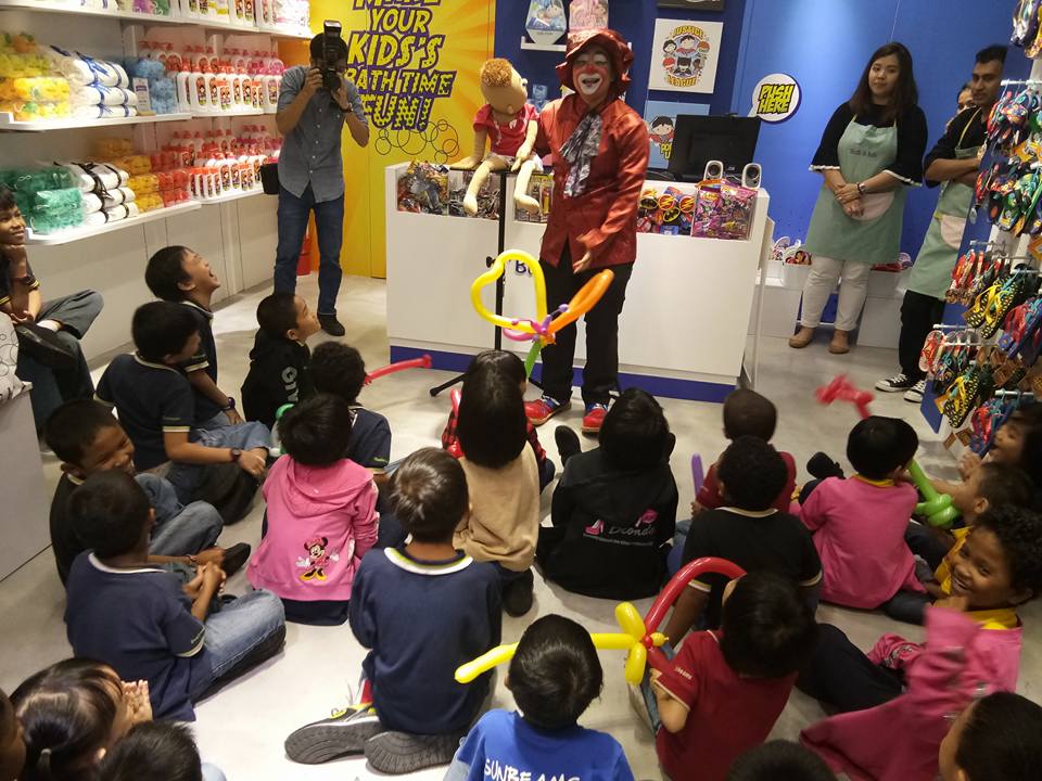 Berbalik pada anak- anak dari Yayasan ini setibanya mereka di outlet Bath&Kids di 1 Utama, mereka telah dihiburkan dengan persembahan badut dan nyanyian dari para penganjur. Aktiviti mainan juga diadakan yang paling best apabila menari di atas surat khabar hingga menjadi kecil. Selain itu permaina seperti “Simon Say … ” mendapat perhatian dan bantuan dari Dato’ dan Datin untuk turut serta