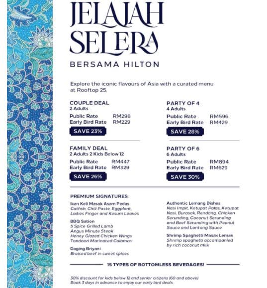 Ianya adalah sebahagian daripada kempen ‘Jelajah Selera Bersama Hilton’ diseluruh negara oleh hotel Hilton Malaysia. Antaranya DoubleTree Hilton