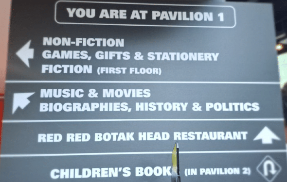 Dibahagikan kepada dua bahagian iaitu untuk Fiksyen dan Non Fiksyen di Pavilion 1 untuk orang dewasa lebih santai untuk memilih sambil merehatkan minda dengan bacaan pilihan.
