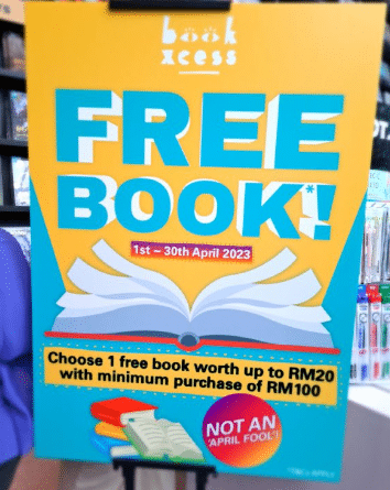 Setiap pembelian RM 100 dan ke atas berpeluang memiliki buku pilihan anda pada harga RM 20. Ini dikongsikan jadual dari 29 April hingga 1 Mei 2023.