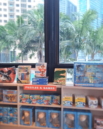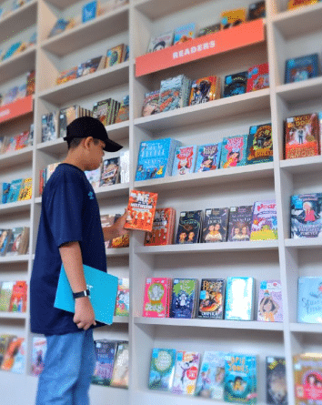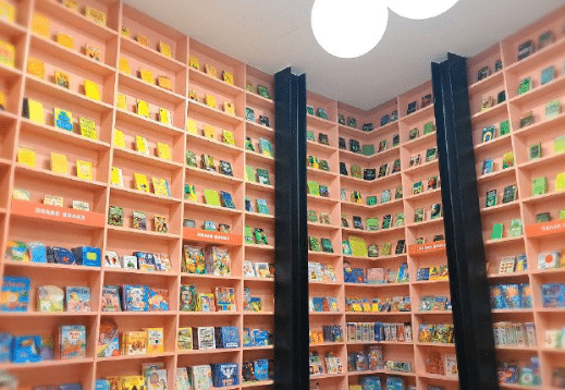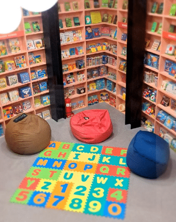 Untuk kanak-kanak ada saja buku di kawasan yang lebih rendah untuk mengalami pengalaman memilih, membaca dan membeli. Pendedahan dari usia awal sangat membantu memupuk tabiat membaca.