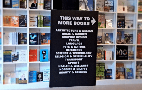 Masih lagi mengetengahkan konsep sebelum ini dimana buku-buku ini dipamerkan sama ada di lorong rendah, lorong tinggi, hingga ke siling kedai.