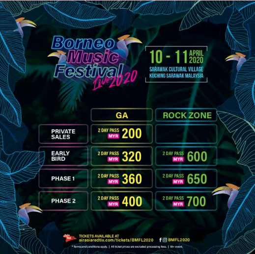 Dapatkan tiket mulai 14 Januari 2020 menerusi airasiaredtix.com/tickets/BMFL2020 dengan segera sebelum kehabisan. Nota penting festival ini adalah untuk mereka yang berumur 18 tahun ke atas sahaja.
