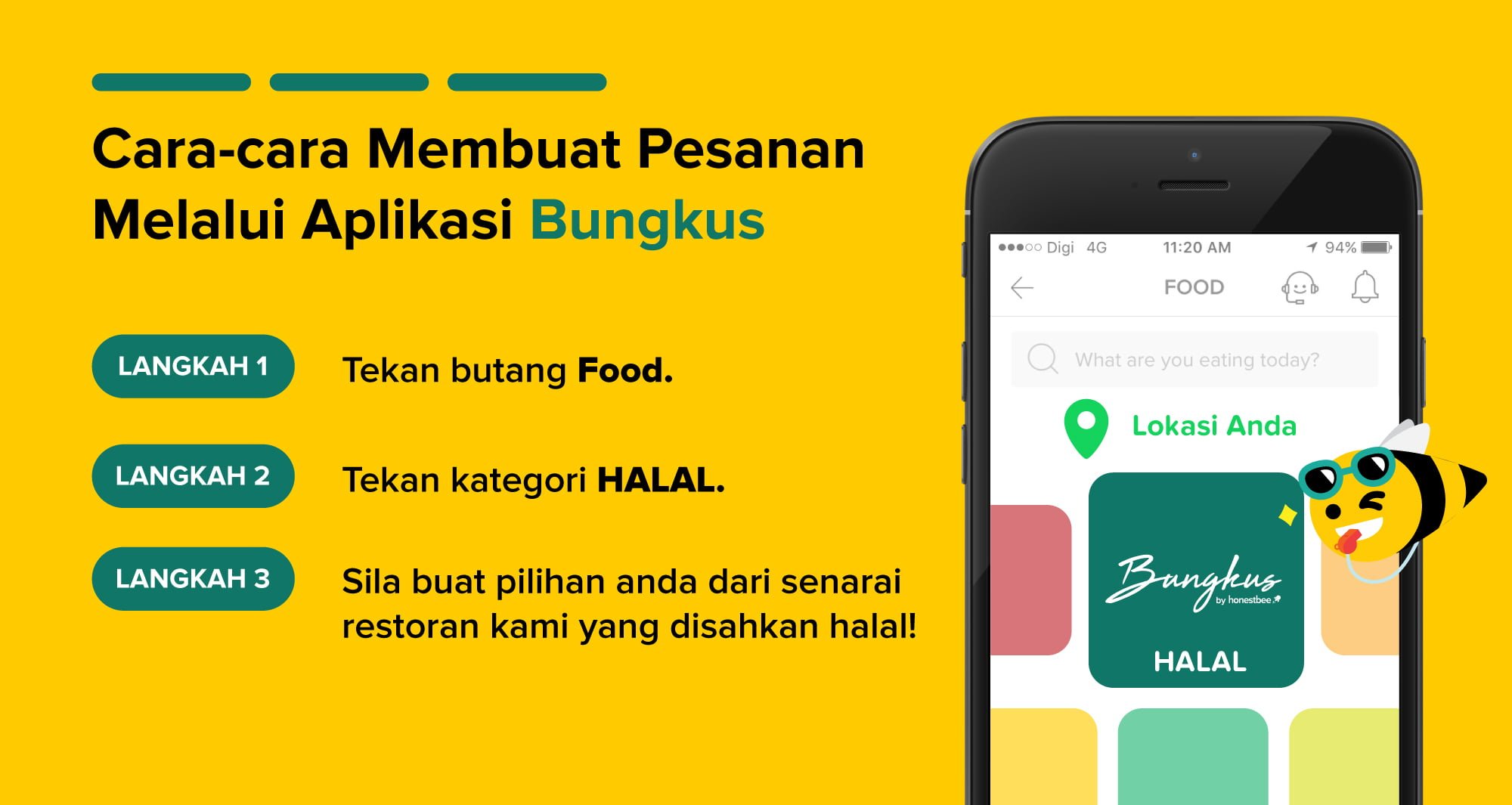 BUNGKUS by honestbee Trend Terbaru Memesan Juadah Secara Online. |Aplikasi penghantaran makanan dalam talian yang inovatif, Honestbee telah memperkenalkan jenama terbaru mereka iaitu Bungkus by honestbee yang hanya berurusan dari restoran yang disahkan halal. Dengan hanya bernamakan Bungkus, perkhidmatan penghantaran makanan kini akan menghubungkan pengguna kepada lebih 40 buah restoran yang dperakui dan disahkan halal seperti Wendy&, Kenny Rogers, Secret Recipe, Old Town White Coffee, Hokkaido Baked Cheese Tart, Vivopizza, Marrybrown dan beberapa restoran utama lain yang telah disahkan halal oleh JAKIM.