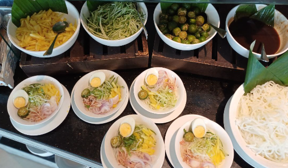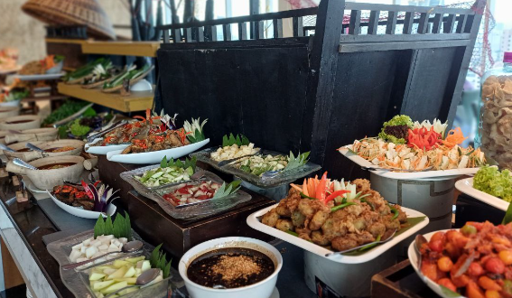 Para tetamu akan disajikan dengan Pilihan Kerabu, Ulam-ulaman, Sambal Kampung dan Salad, Pilihan Hidangan Utama seperti Ayam Masak Kuzi, Ikan Tengiri Sambal Hijau Manga Muda.