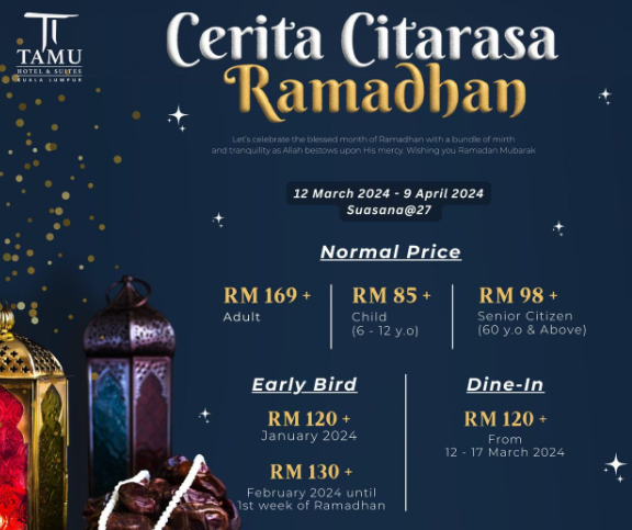 Sila hubungi pihak Tamu Hotel & Suites Kuala Lumpur untuk tempahan dan pembelian baucar Iftar Cerita Citarasa Ramadhan anda di