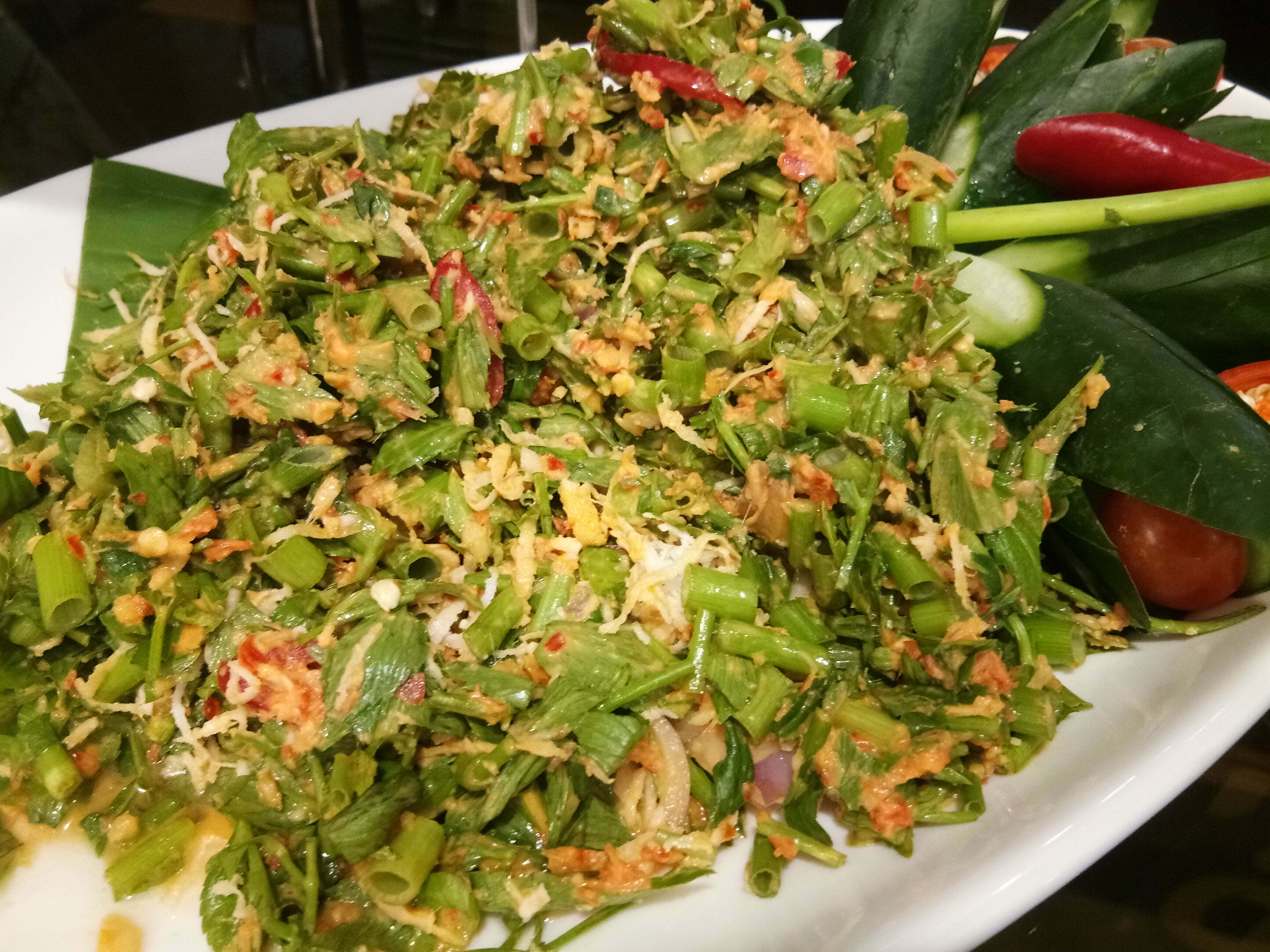 Ulam- ulaman dan salad. Nampak tak jantung tu dengan daun pucuk ubi