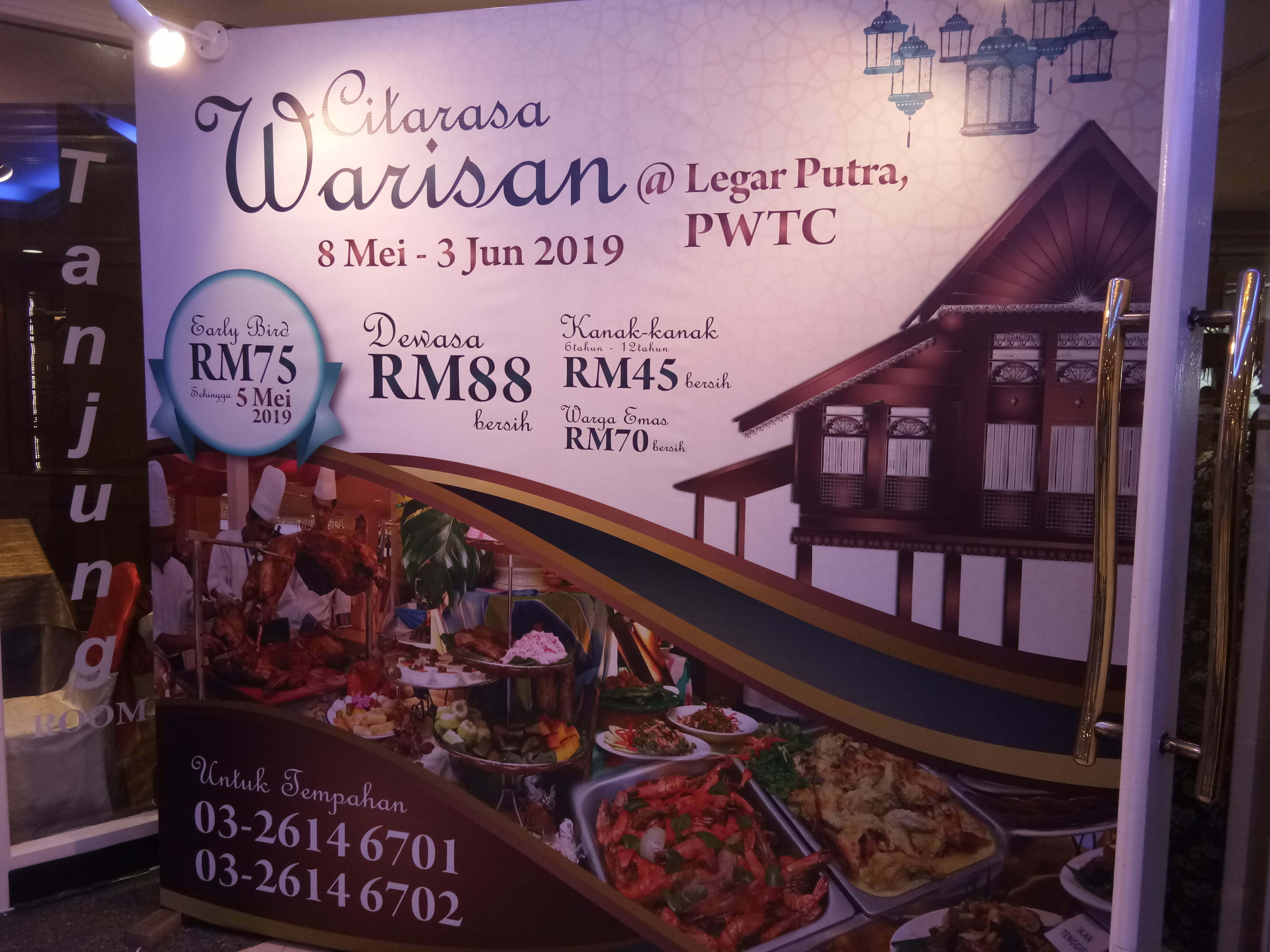 Citarasa Warisan Tema Berbuka Puasa di Riverside PWTC|Restoran Riverside di Pusat Dagangan Dunia Putra (PWTC) tidak melepaskan peluang menawarkan lebih daripada 250 jenis juadah makanan sebagai sajian berbuka puasa sepanjang Ramadhan ini. Pusat Dagangan Dunia Putra (PWTC) turut menyediakan pakej berbuka puasa persendirian dan korporat dengan harga berpatutan. Pakej ini turut menyediakan hidangan bufet, dewan khas untuk berbuka puasa, sistem audio, penyediaan ruang solat khas serta kadar parkir tetap bernilai RM5.00 bemula dari jam 6.00 petang.