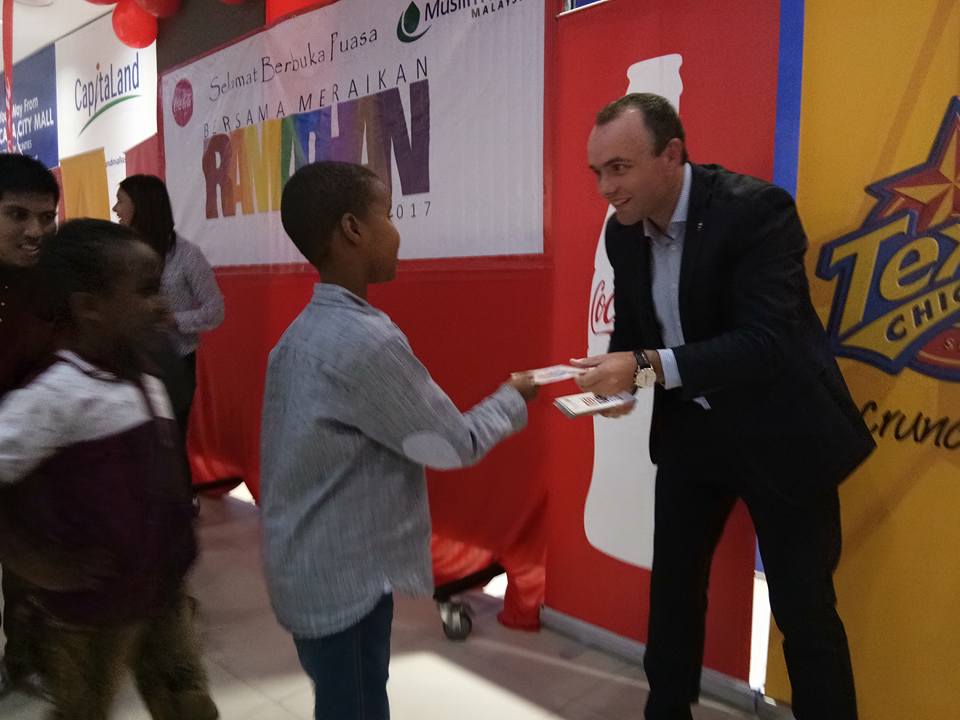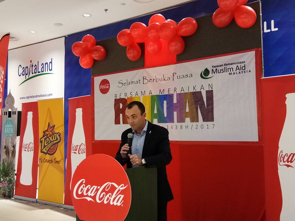 Melalui hubungan yang dijalin sejak tahun 2010, Coca-Cola terus menyokong aktiviti kebajikan yang dilaksanakan Muslim Aid Malaysia untuk mereka yang kurang bernasib baik dan untuk tahun ini Coca-Cola akan turut membabitkan rakan niaganya seperti Tropicana City Mall, AEON Big dan Texas Chicken bagi menceriakan lagi golongan ini.