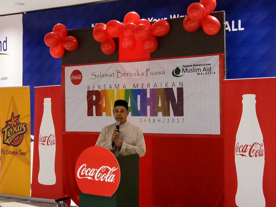 Coca-Cola & Muslim Aid Malaysia berkerjasama dalam program kebajikan untuk Ramadan kali ini . Yayasan Kemanusiaan Muslim Aid Malaysia (Muslim Aid Malaysia) meneruskan program kebajikannya, Fast2Feed Ramadan ini, dengan membekalkan makanan berkhasiat dan minuman penghilang dahaga serta kegembiraan kepada 4,000 orang dari komuniti yang memerlukan, melalui sokongan berterusan dari Coca-Cola Malaysia.