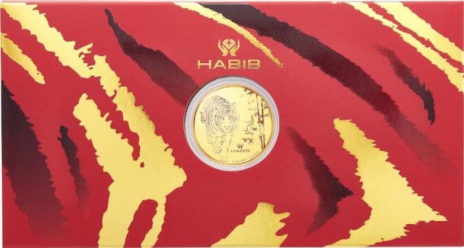 HABIB menampilkan syiling wafer emas 999 edisi terhad diinspirasikan daripada ‘Harimau digabungkan dengan warna-warna tuah seperti merah dan emas.