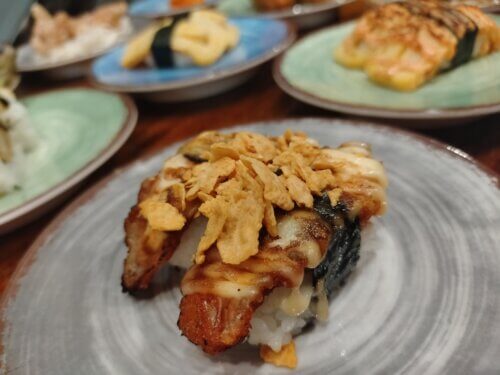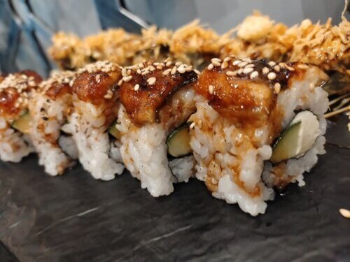Wajib ada unagi lah kan! Yang memberi kelainan adalah krim cheese diatasnya