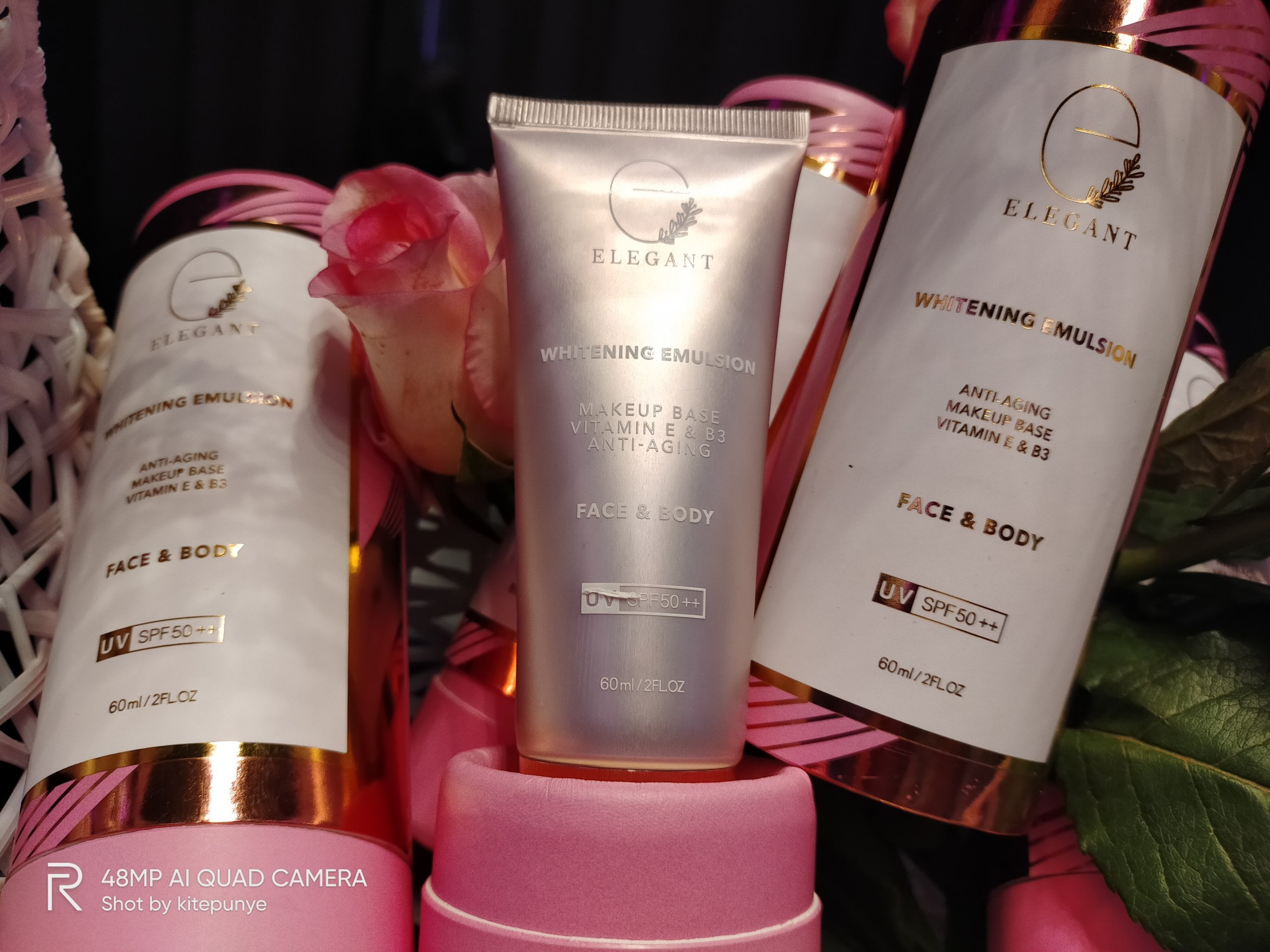 ” Bagi Elegant Cosmetics kami amat perihatian terdapat kualiti produk yang dihasilkan, merangkumi citarasa dan kehendak wanita masa kini. Bagi produk Whitening Emulsion ianya dicipta dengan campuran ramuan bermutu tinggi dari dalam dan luar negara seperti Perancis dan Switzeland, dan melihat kepada permintaan dan pasaran kosmetik yang makin berkembang didalam dan luar negara, pihak syarikat yakin untuk menjadi salah satu pemain yang mampu memberi saingan. :