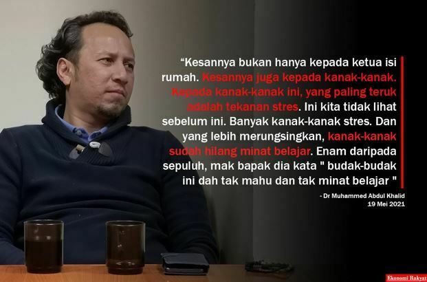 Anak KP jadi semakin kurang minat belajar sebab banyak subjek yang ketinggalan ketika PdPR sebelum ini. Memang KP akui banyak sebenarnya kekurangan pembelajaran secara atas talian ni kerana kurangnya interaksi pelajar dengan guru.