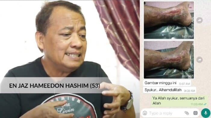 Atas sokongan dan dorongan dari kakak, En Jaz mengamalkannya. Masih lagi menerima rawatan di klinik kesihatan untuk dressing. Setiap hari mendoakan agar ada kesembuhan walaupun ada kalanya tidak mempercayainya.