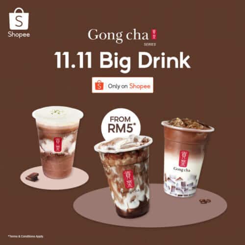 The Gong Cha e-drink series can only be purchased via the Shopee App, and redeemed at all Gong Cha outlets nationwide. Get the Shopee x Gong Cha 11.11 Big Drink series exclusively on Shopee through the Food & Services Vouchers in-app portal from now to 22 November.