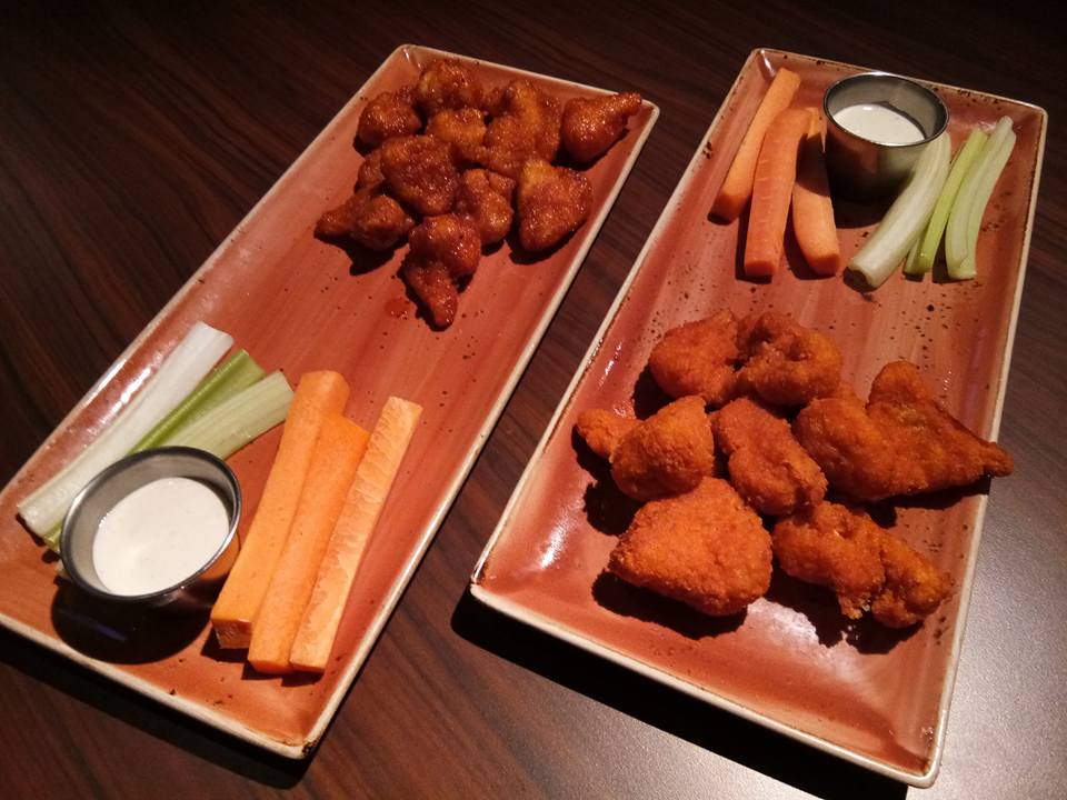 - Cauliflower “Wings” – crispy Buffalo-style cauliflower served with bleu cheese, celery and carrot sticks.