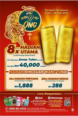 Rasa Ong (tuah) anda sudah tiba? Jom sertai Peraduan Hari-HariMau Ong Nestlé Sedia-Untuk-Diminum (RTD) edisi 2022. Anda mungkin salah seorang daripada lapan rakyat Malaysia yang betul-betul ONG.