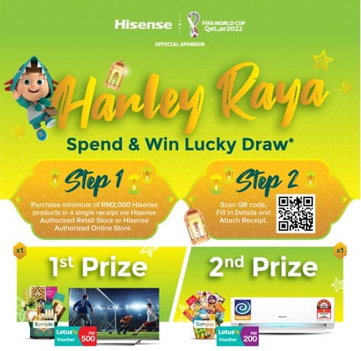 As well as Raya hampers and Lotus vouchers of up to RM500. Be sure to fill in the details of your purchase at https://campaign.hisense.com.my/raya22 from 15th April to 31st May 2022 to join in the lucky draw.