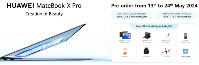 Free gift worth up to RM4,582 is up for grab during the pre-order period to provide additional value to early purchasers of the sleek new HUAWEI MateBook X PRO (2024)!