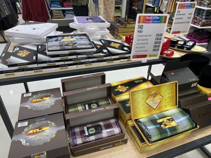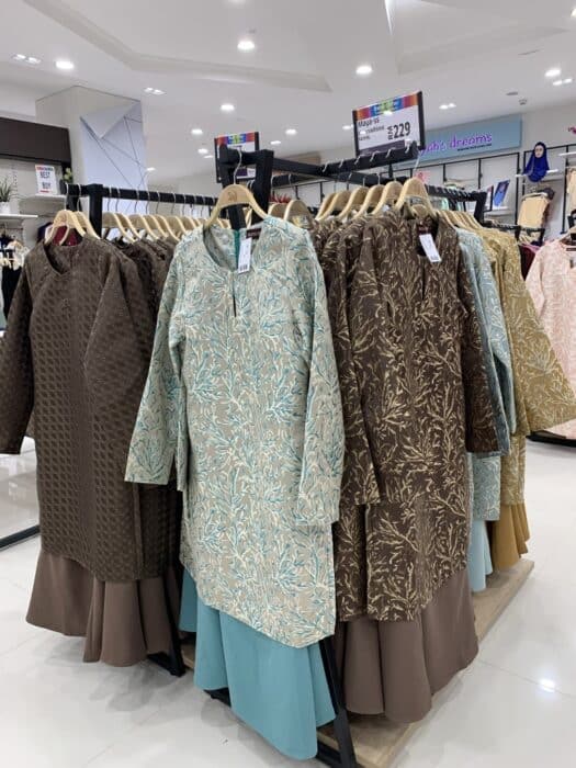 Mana taknya, pelbagai jenama pakaian ada terutama sekali baju kurung jua baju melayu. Siap dengan pilihan warna yang cantik dan mengikut fesyen terkini. Nak sedondon pun ada ya.
