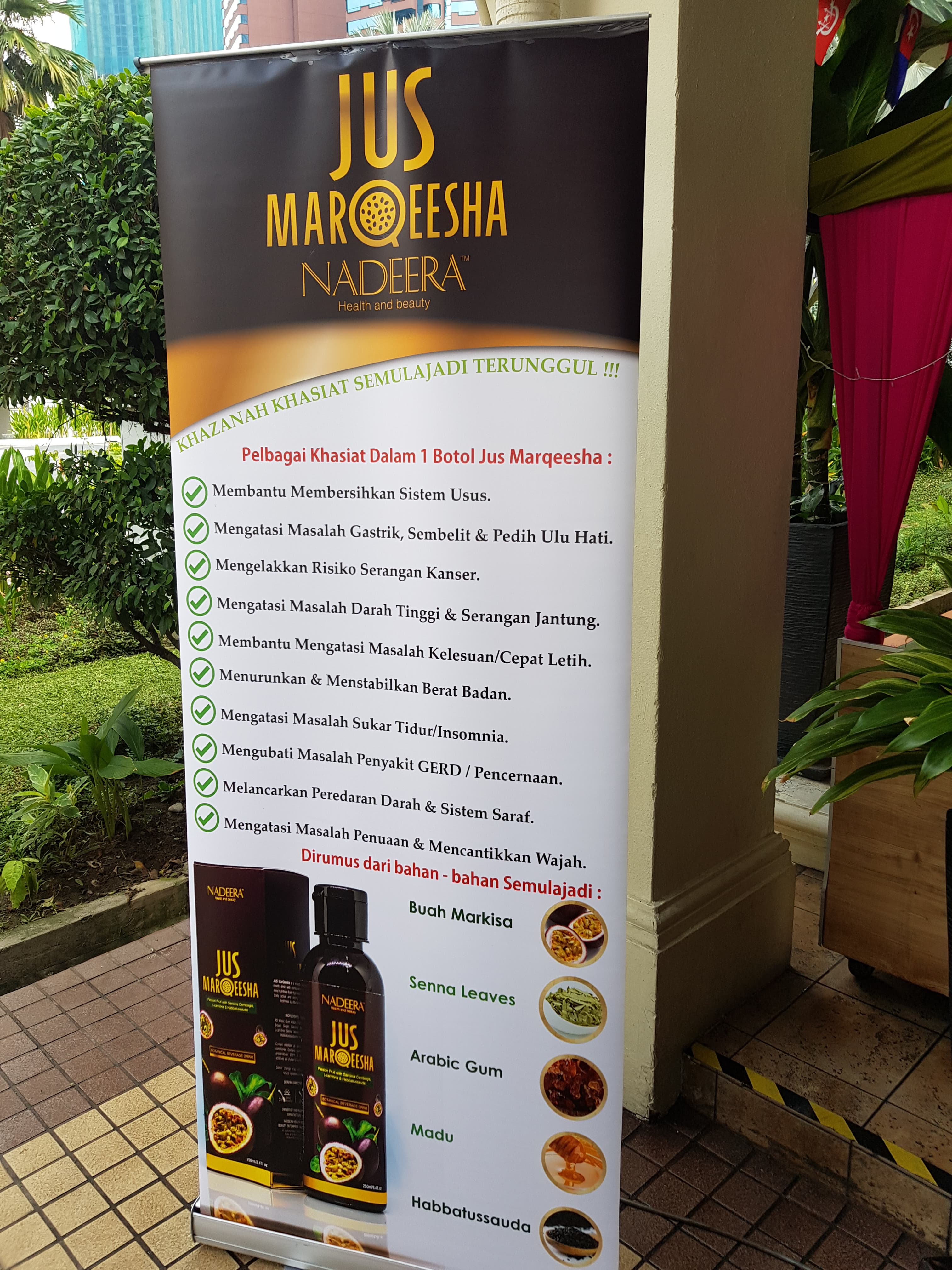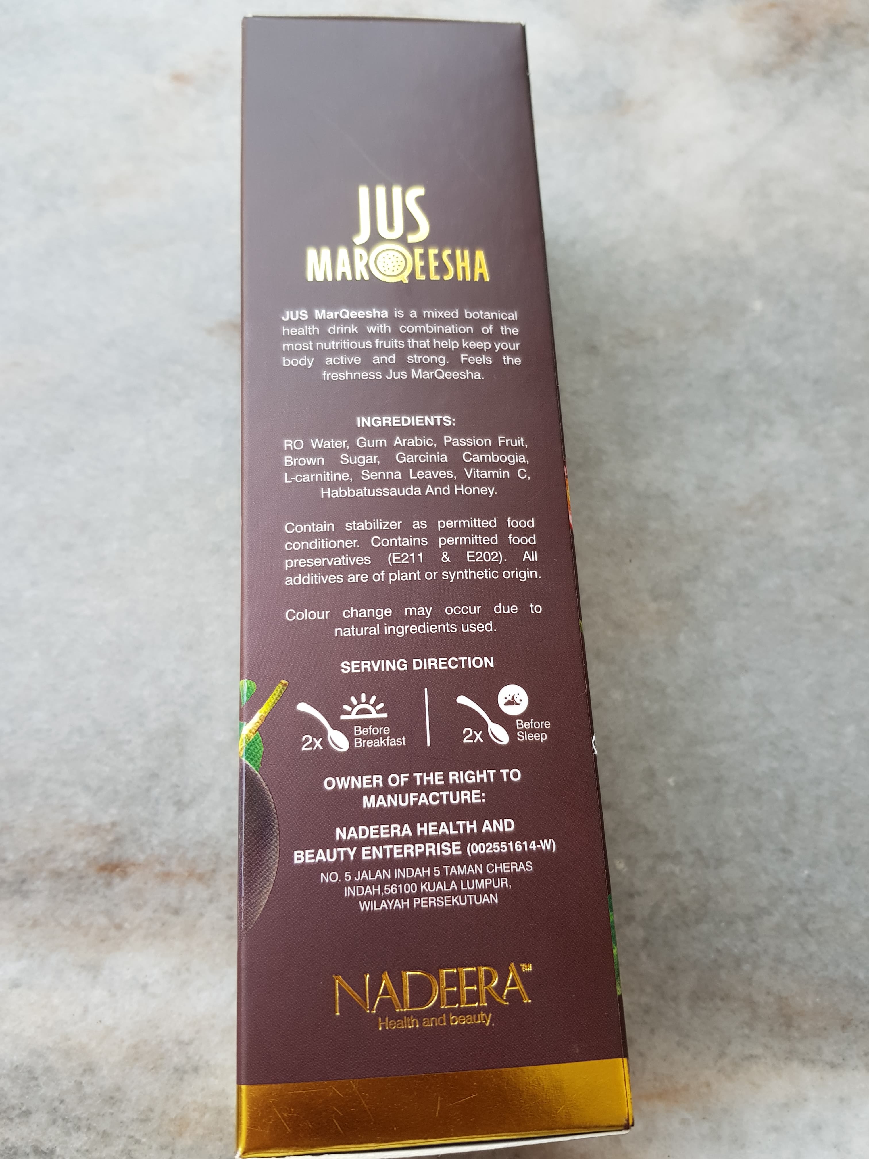 Terbaru, KP menemui produk keluaran Nadeera Beauty iaitu Jus Marqeesha ! Jus yang dihasilkan dari ekstrak buah markisa bersama gam arab, garcinia cambogia, daun senna, habbatus sauda dan madu. Dari bahan-bahan ini pastinya anda tahu kelebihan atau keistimewaannya. Pengeluaran produk ini adalah dari pengalaman sendiri dimana selalu mengalami masalah seperti sembelit dan sakit ulu hati. Dari sinilah tercetusnya idea untuk mengeluarkan produk kesihatan oleh Encik Mohd Kusyairi dan Puan Nor Nadira