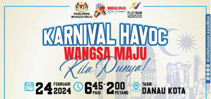 Bakal menganjurkan satu karnival iaitu Havoc Wangsa Maju Kita Punya 2024 pada 24 Februari ini di Taman Tasik Danau Kota, Setapak.