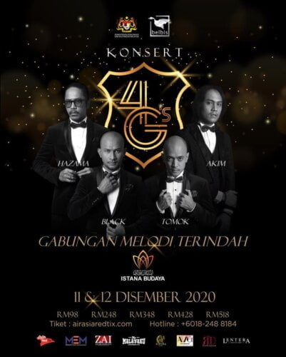 Konsert 4G’s – Black, Hazama, Tomok & Akim Temui Peminat 11-12 Dis| Konsert 4G’s yang dinantikan kini bakal temui peminat. Tenaga, pengaruh dan kuasa muzik mereka tidak pernah hilang getar di hati peminat. Dari awal kemunculan hinggalah membina portfolio sebagai penerus legasi seni.