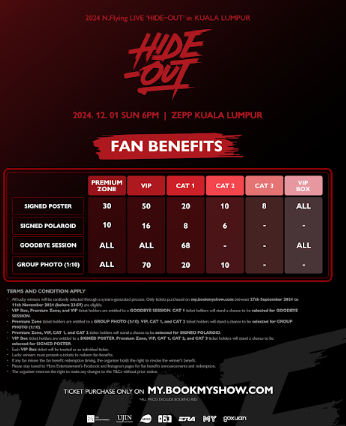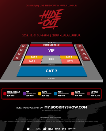 Kehadiran N.Flying yang dibawa khas oleh More Entertainment dengan anjuran bersama 163 adalah bagi menjayakan 2024 N.Flying LIVE ‘HIDE-OUT’ di Kuala Lumpur. Bakal menggegarkan ZEPP Kuala Lumpur pada 1 Disember (Ahad), 6 petang. Tiket mula dijual pada 27 September (Jumaat), 11 pagi melalui my.bookmyshow.com