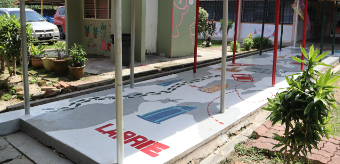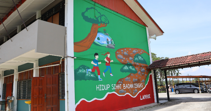 Untuk kali ini bagi projek pengindahan semula dan keceriaan dua blok SMK Sungai Choh berwajah baharu. Memperluas inisiatif komunitinya, LARRIE turut menaja tiga buah mural termasuk di laluan pejalan kaki utama,
