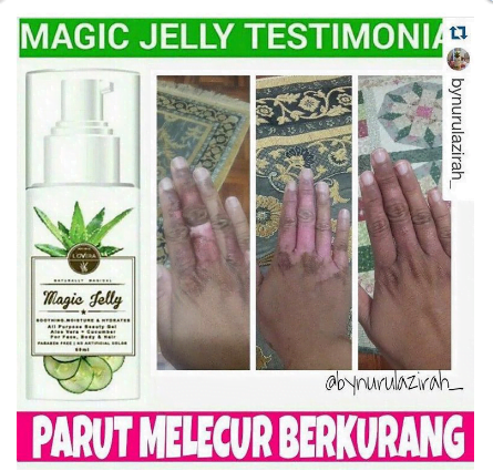 - Manfaat Lain – Bahan utama yang digunakan seperti aloe vera memang memberikan kebaikan pada kulit. Ia dapat membantu dalam proses penyembuhan dan memberi hasil yang bagus pada kulit. Seperti contoh jika anda mempunyai kesan lecur pada kulit, sapulah Lovera Magic Jelly ini pada tempat luka tersebut. Insyallah hari demi hari ia dapat membantu mengembalikan kulit balik.
