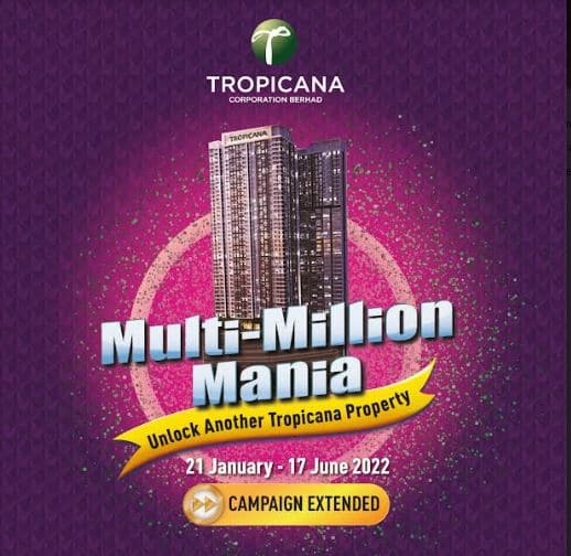 MULTI-MILLION MANIA CAMPAIGN EXTENDS BY POPULAR DEMAND! | Assalamualaikum dan Salam Sejahtera. Tropicana Corporation Berhad (“Tropicana”) teamed up with