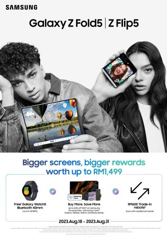 So, buy the Galaxy Z Flip5 and Galaxy Z Fold5 from now until 31 August 2023 and get rewards worth up to RM1,499!