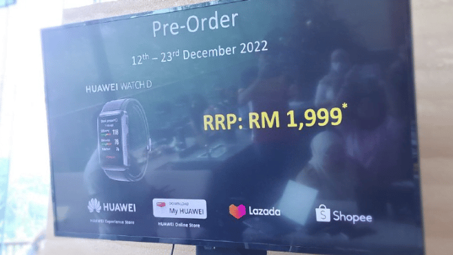Priced at RM1,999, HUAWEI WATCH D will be available for pre-order starting 12 December 2022 until 23 December 2022