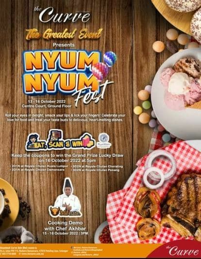 Eat, Scan & Win – Tiada minimum pembelian. Asalkan anda membeli apa apa saja di Nyum Nyum Festival, jangan lupa ambil kupon untuk melayakkan anda cabutan bertuah.