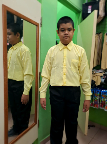 Untuk anak teruna kali ini, pembelian menjadi sedikit kelainan . Mana taknya anak teruna -Irfan dapat jadi pengawas petang. Set baju sekolah terus bertukar dari putih hijau kepada kuning hitam.