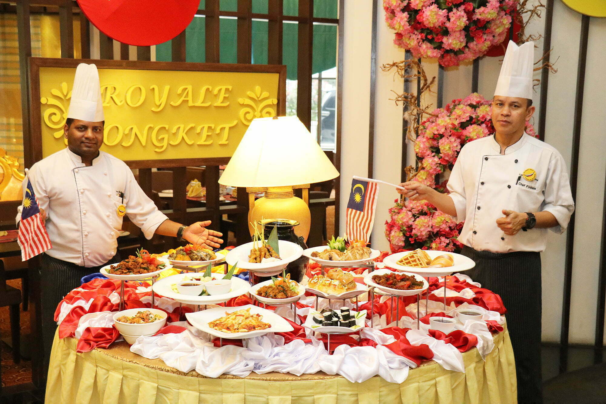 Semasa Hi Tea Bulan Merdeka ini juga, pengunjung boleh menikmati pelbagai pilihan masakan Melayu, India, Cina dan Barat yang disediakan oleh chef berpengalaman kami. Penggemar masakan Melayu dan Indian bolehlah mencuba hidangan seperti Kambing dengan Cili Merah, Nasi Kukus Jasmin, Kari Kambing Hijau dengan Terung, Roti Naan, Kari Ayam Madrashah dengan Santan dan Kari Sayur Dhal dengan Kerepek Rangup. Selain itu, pengunjung turut dapat menikmati masakan Cina seperti Nasi Goreng Cina, Sotong Cili Kering, Ikan Masam Manis dengan Nanas, Sotong Goreng bersama Sos Masam Manis dan Seasonal Green Vegetable with Herbs.