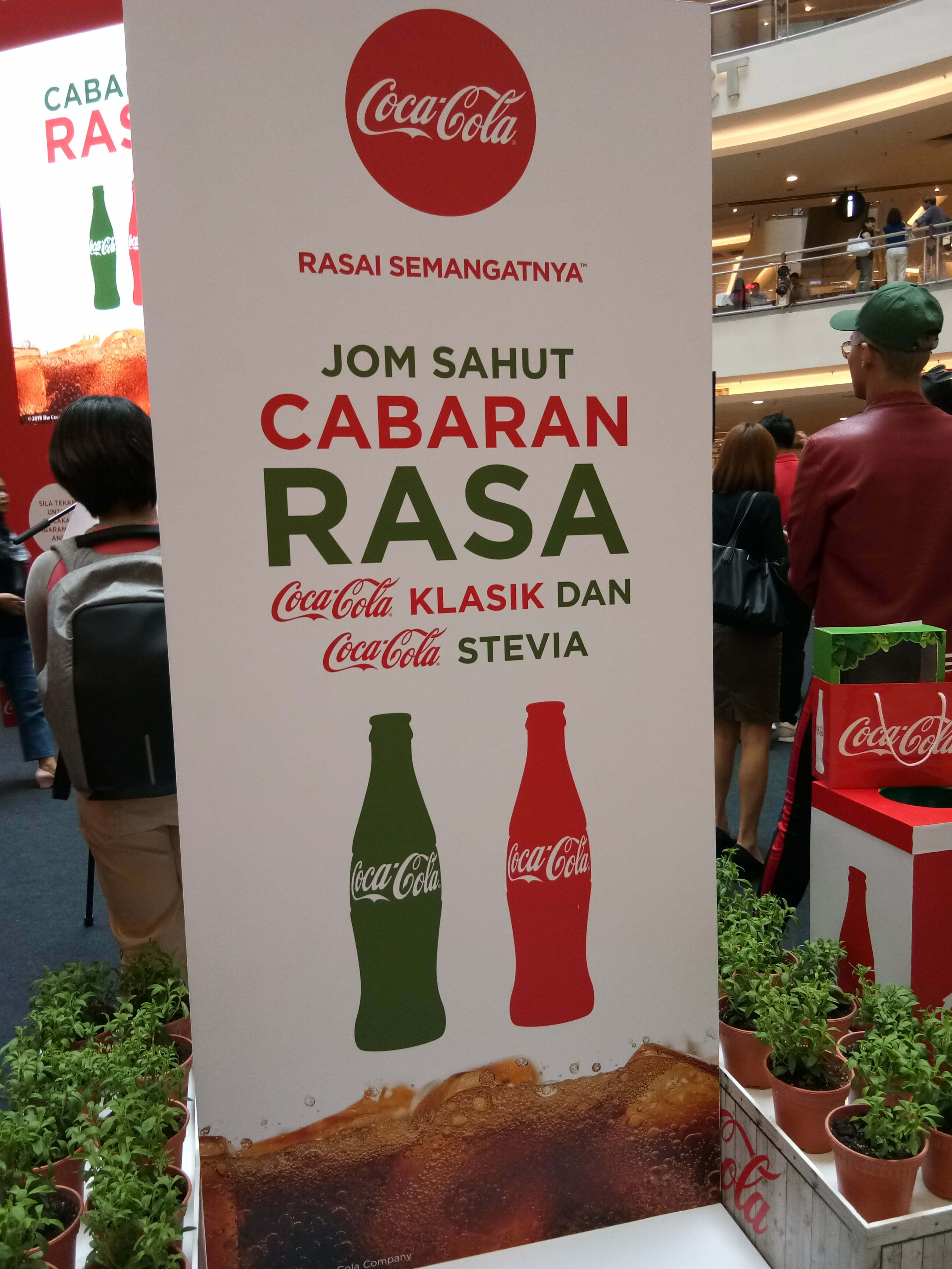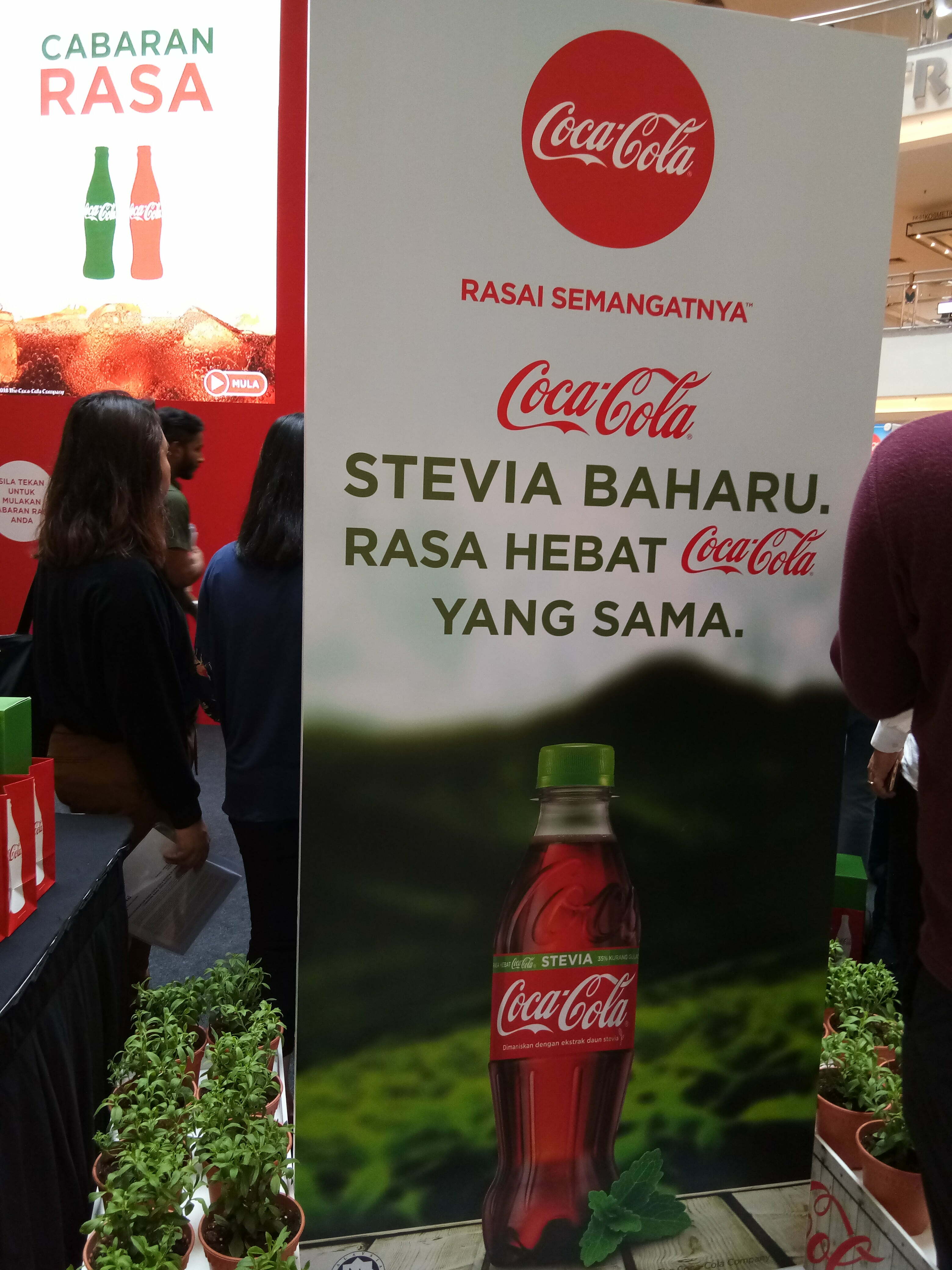 Rasa Coca-Cola Stevia Di Pameran ‘Cabaran Rasa’ Coca-Cola |Coca-Cola Stevia, pilihan kurang gula dimaniskan dengan sumber-sumber semula jadi adalah tambahan terkini kepada rangkaian Coca-Cola yang setakat ini merangkumi Coca-Cola Classic, Light, Zero Sugar, dan Vanilla. Coca-Cola Stevia yang boleh didapati di seluruh negara memberikan kehebatan rasa Coca-Cola Classic tetapi dengan 35% kurang gula, dihasilkan dengan kombinasi gula dan kemanisan ekstrak semulajadi Stevia.