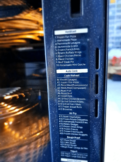 Mempunyai pelbagai mod memasak dari pra-panas[preheat], mod eco, ‘steam’, ‘air fry'[goreng udara] dan paling penting ada kunci keselamatan kanak-kanak [child lock].