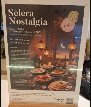 Berlangsung dari 20 Februari hingga 15 Mac 2026, setiap Jumaat hingga Ahad, bufet ini menjanjikan pengalaman makan malam santai, mengenyangkan dan penuh memori — sesuai untuk keluarga dan rakan-rakan.