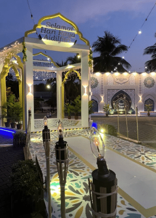 Lampu beraya telah dinyalakan dan hiasan perayaan yang bergaya moden sambil mengimbau kenangan sambutan “balik kampung” telahpun siap sedia.