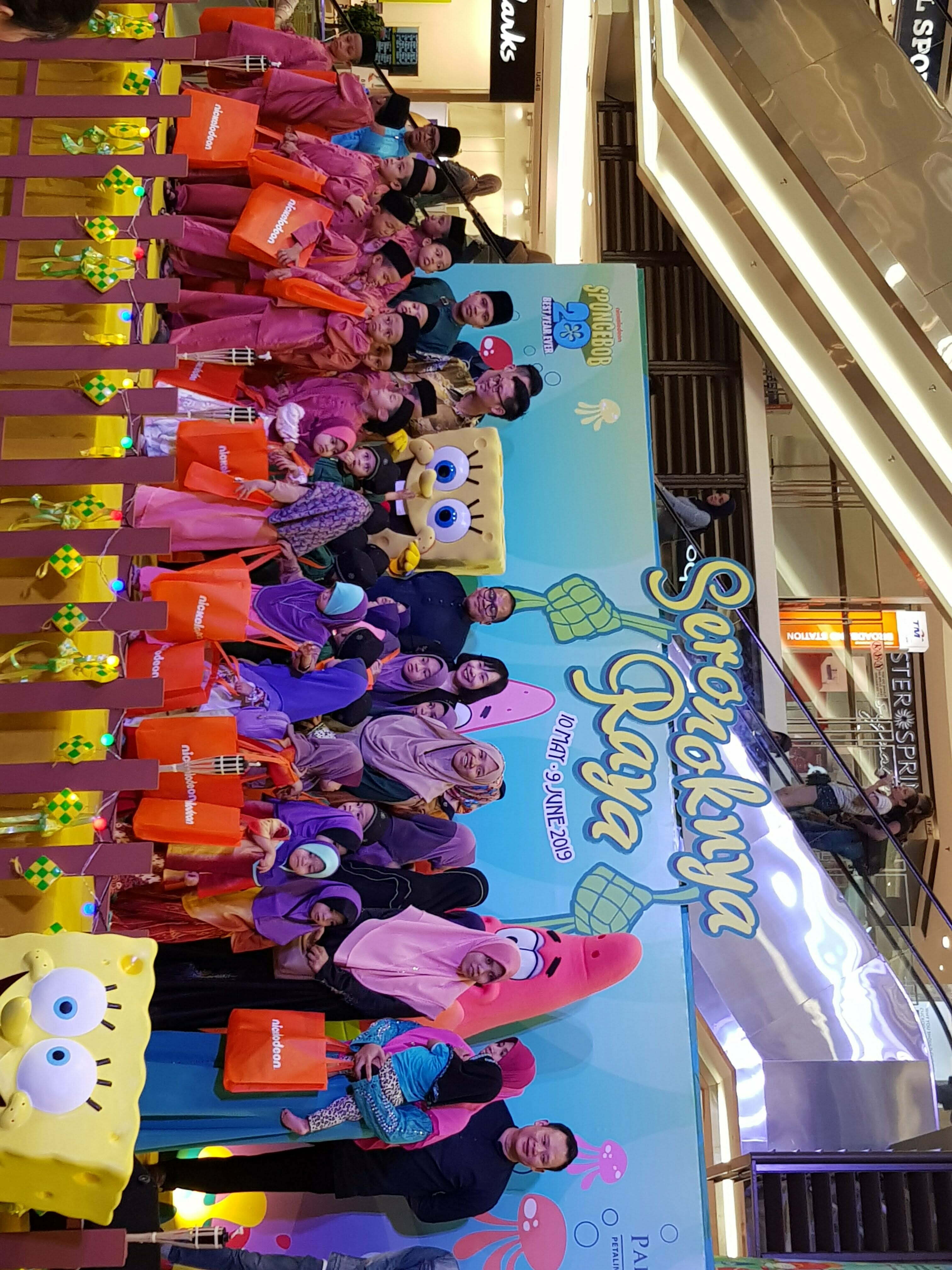 Tema Seronoknya Raya seakan sesuai dimana anak-anak yatim bukan setakat mendapat duit raya tetapi juga barangan koleksi Spongebob buat mereka.
