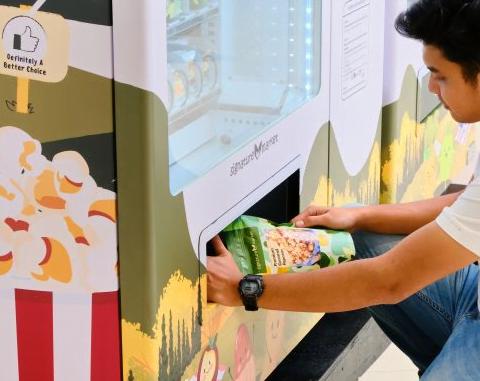 Pelanggan boleh mendapatkan set snek PERCUMA mereka setiap minggu daripada mesin layan diri . Memudahkan mereka untuk menikmati makanan ringan yang sihat dan organik sepanjang bulan mulia itu.