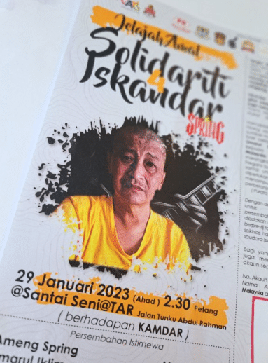Mengadakan persembahan dalam bentuk ‘busking’ bagi mengutip dana untuk membiayai derita yang ditanggung oleh Iskandar yang setahun terlantar,’