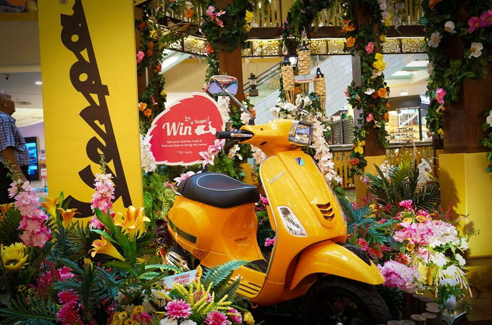 Sunway Pyramid turut menjalin kerjasama dengan Kumpulan Naza untuk menghadiahkan sebuah Vespa edisi terhad kepada seorang pemenang bertuah. Vespa yang bergaya ini lebih istimewa kerana karya seni pada Vespa tersebut adalah hasil tangan karyawan seni terkenal, Fritilldea. Untuk memiliki Vespa edisi terhad ini, pembeli hanya perlu melengkapkan tiga aktiviti di Orange Concourse Sunway Pyramid, imbas kod QR yang unik untuk muat turun aplikasi mudah alih Sunway Pyramid yang baharu dan daftarkan diri untuk peraduan ini yang akan berakhir pada 9 Jun.