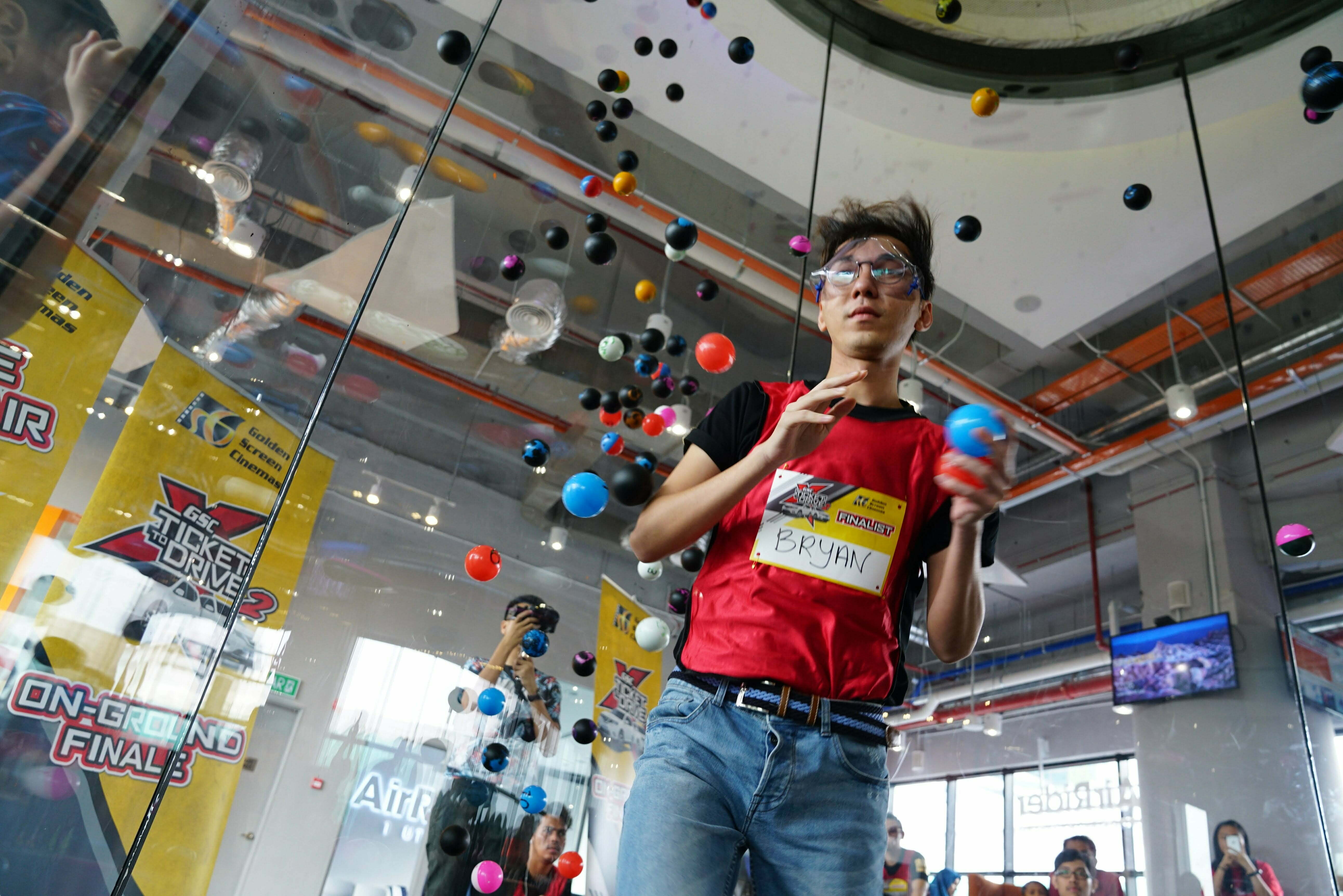 Only 10 finalists made it to the second round “Ride the Air”, which then required them to enter an enclosed wind chamber and attempt at collecting two balls. The top five to collect the balls with the highest value combined wins the round and proceeds to the finals – “Golden Rush” where they are tasked with playing and completing mini-games in the fastest time possible.