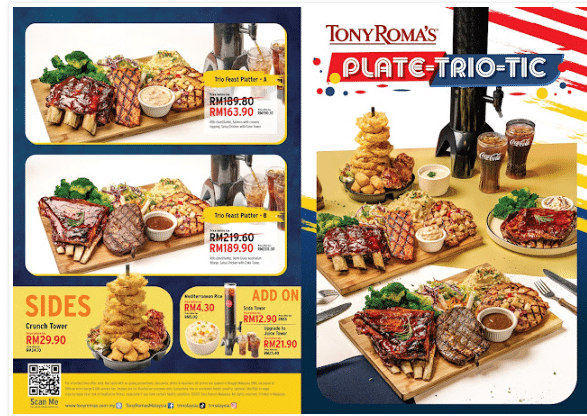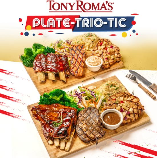 Menu ‘Plate-Trio-Tic’ ini bermula dari 1 Ogos sehingga 1 Oktober di cawangan Tony Roma’s.