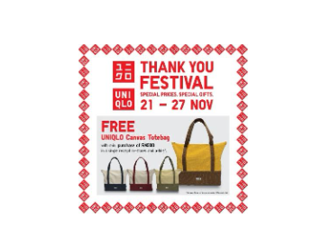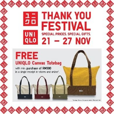 - Receive a special edition UNIQLO Canvas Tote Bag with RM300 spend or more in a single receipt, in-store and online.